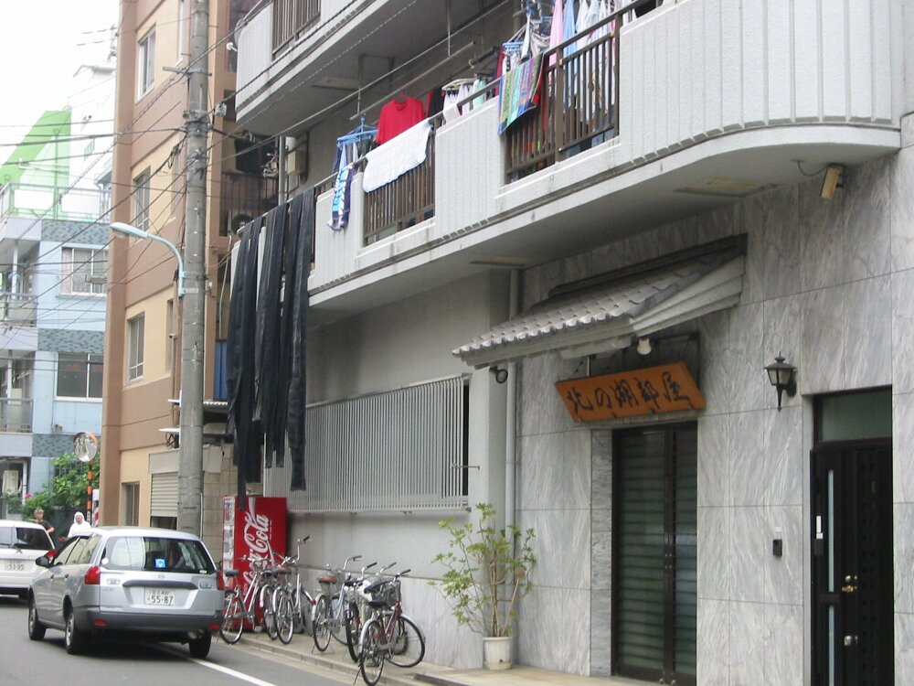 ここは北の湖部屋、二階からぶらさがっているのは何でしょうか。右の写真は昔、巨人、なんとか、卵焼きでなつかしい大鵬部屋。