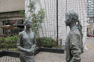 これは朝倉響子さんの作品「マリーとシェリー」まるで路上で語り合っている