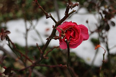まだ雪がのこっている中庭には薔薇がさいていました。