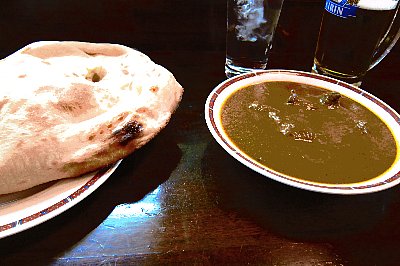 やっと見付けたインドカレーのお店、マトンカレーをたのみましたが、ナンの大きさ