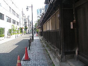 炭団坂を降り、そこは、菊坂下通り。こんな感じの建物もある古い通りです。