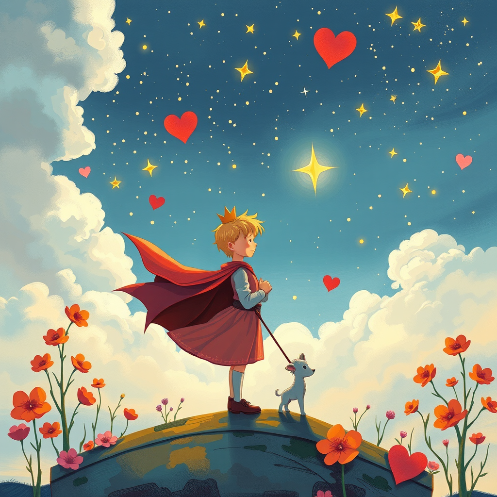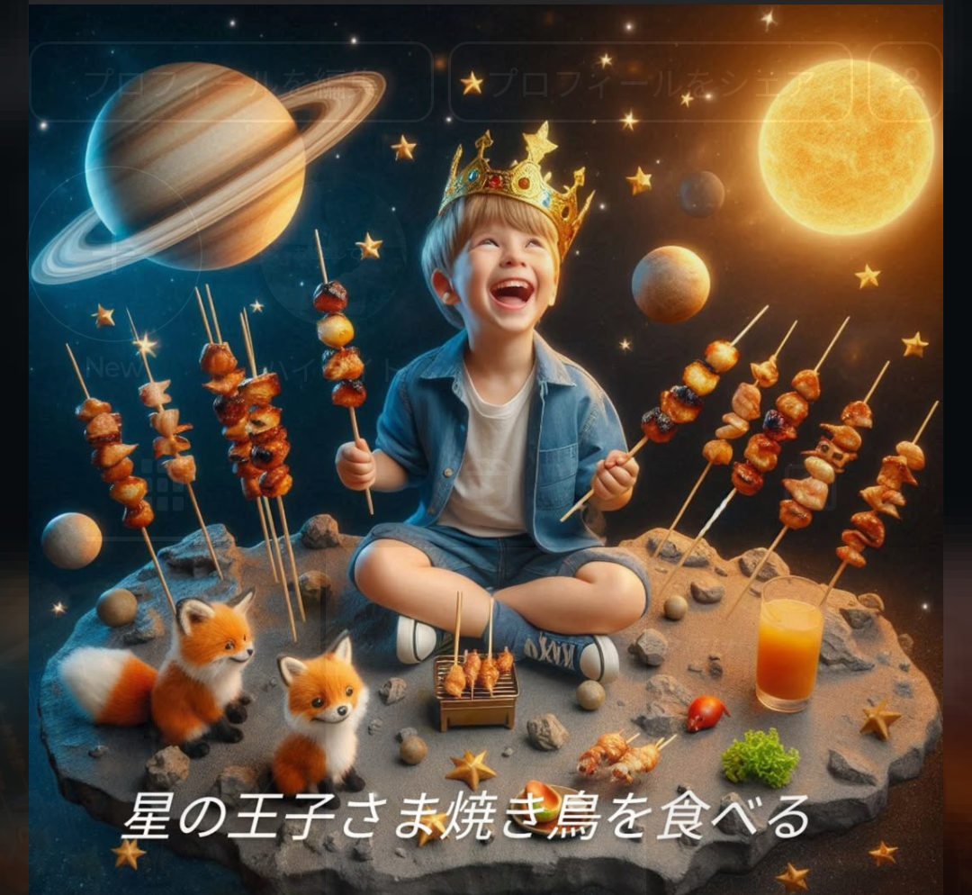 最初の写真のタイトルは「星の王子さま恋人を待つ」、2番目は「焼き鳥を食べる星の王子さま」