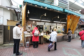 表に出てみると、惣菜屋さんが多いのに気がつきます、立ち食いしている叔父さんが