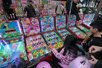 子どもたちは日本の温泉地に昔あったスマートボールに似たゲーム