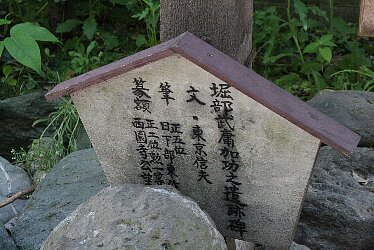 早稲田大学をぬけ、ほどなく水稲荷神社、甘泉園公園と向かい合わせになっています、水稲荷神社にあった堀部安部の記念碑です、