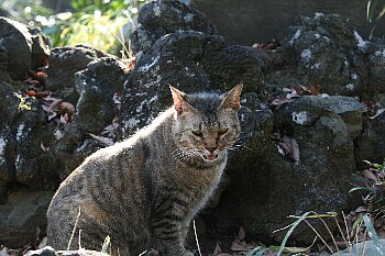 境内からはいってすぐ、鐘楼までの昇り降りの間、ずっとあとをついてきたものずきな猫です、ここは猫が多い。