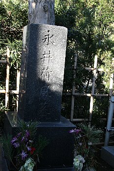 右は永井荷風の墓、彼も胃潰瘍で病死とかで、遺産は数億円と言われたそうですが、誰がひきついだの