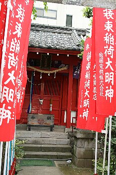 滝をあとに京浜東北線のガードをくぐり北本通りを渡り一本目の路地を左に入ると装束稲荷があります。
